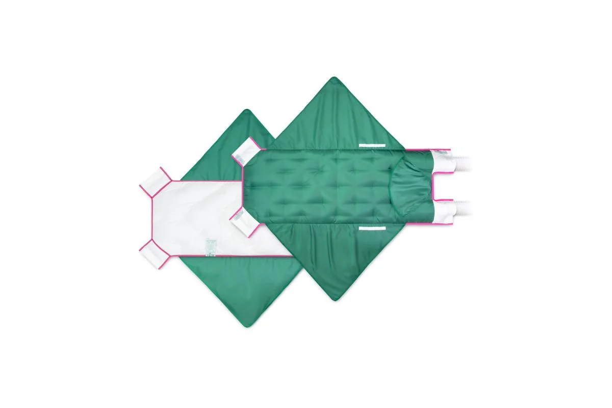 With integrated hood and side wings. Can be folded to the size of an incubator. By turning the cover over, it turns into a sleeping bag.